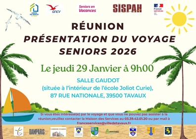 Réunion présentation du voyage seniors 2026jeudi 29 janvier 9h salle Gaudot |